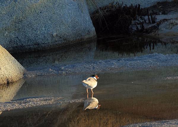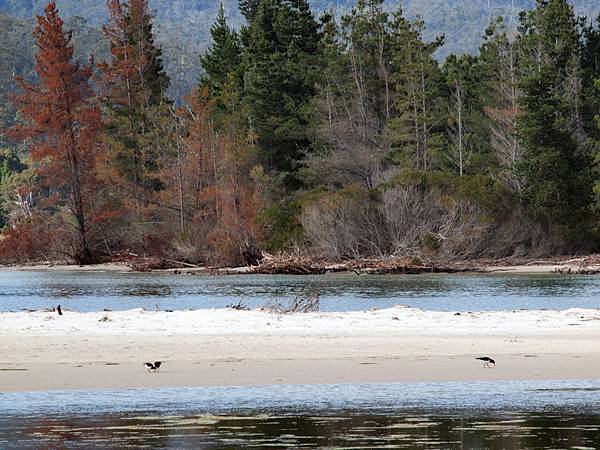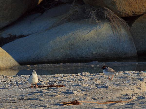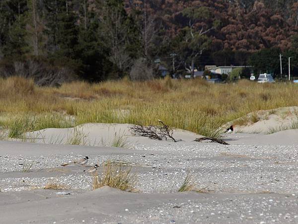 一對小偷鳥右後方那隻有長長紅喙的黑鳥兒叫Oyster chater